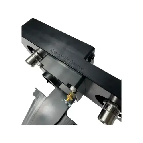 When your factory filtration system trips the water and fuel sensor light on the dash it's usually too late because it has already made its way into the water separator and possibly further. SPE has tried to remedy this by developing a pre-chamber that the factory sensor goes in prior to the water and fuel separator filter. This pre-chamber gives the system a better chance of tripping the "water in fuel" light before it even hits the main water separator filter. There's an additional drain valve on the pre-chamber, as well, for service.