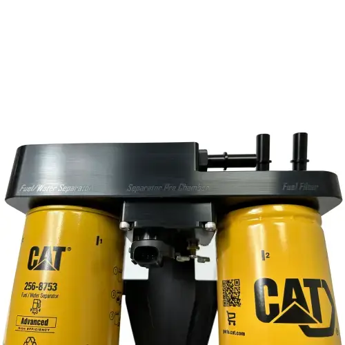 The SPE team designed the setup around some of the best filters on the market all while keeping them in the location of the factory lower fuel filter (DFCM). SPE utilizes CAT 256-8753 for the water and fuel separator filter. This filter has the same 10-micron rating as the factory filter but out-flows the factory unit by over 150 gallons per hour while still being efficient.