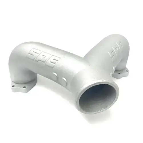 SPE Motorsport Intake Piping Kit for Ford 6.7L Power Stroke (Early 2011-14 Replacement Non-VGT Kits (i.e. Smeding or Early MPD Budget Kit) - Polished SPE Motorsport is proud to finally introduce our upgraded intercooler/intake piping kit for the 6.7L Powerstroke. This kit replaces the restrictive factory plastic upper intake and cast aluminum lower intake. SPE has developed our kits to cover 2011-2026 trucks. The SPE piping kit includes all polished aluminum piping, cast aluminum Y manifold, 5-ply silicone couplers, t-bolts clamps, and hardware. The SPE cast aluminum Y manifold has a true 3” internal diameter, unlike the rest of the kits on the market, along with cast-in injectable bosses and the use of factory style o-ring gaskets for ease of installation and replacement. The cast Y manifold is available in raw or micro-wrinkle black powder coat. The cold side pipe is 3.5” diameter, unlike the more common 3” seen in most competitors' kits. This not only helps with flow but also gives your engine bay a bolder, tougher look. SPE also includes a welded on billet IAT bung so that it can be installed and used as the manufacturer intended. This, too, is not commonly seen in competitor's kits. In our experience, this is an integral part in collecting data and for PCM functionality. With so many customers already having cold air intakes previously installed, SPE wanted to make our kit so that you could use that investment and not have to sell or get rid of it. We include a high quality rotomolded adapter that cleanly connects all stock and aftermarket cold air kits to your turbo with multiple adapter options based on turbo style and truck. This piping kit is an excellent match for the SPE Emperor Turbo System. It gets even better. If/when you decide to change turbochargers, you will just need to purchase the appropriate Lower Air Intake Adapter to fit the new turbo you're installing.