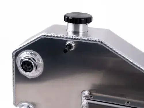 This all-aluminum sheet metal tank and battery box combination drastically improves strength while cleaning up the entire passenger-side engine bay. The welded housing resists heat, pressure, and vibration far better than the stock plastic reservoir. A built-in sight glass provides quick and accurate coolant level checks.
