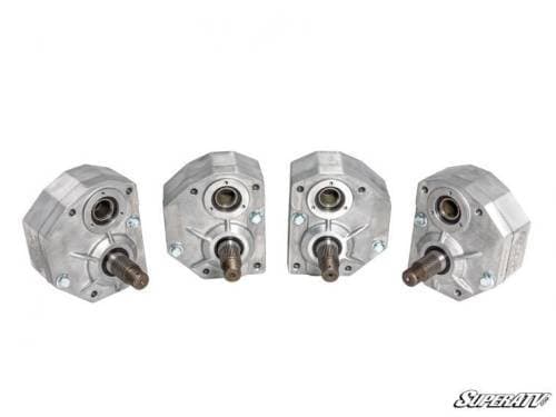 SuperATV 4" Portal Single Gear Lift for Can-Am (2017-24) Maverick X3 (Single Idler, Standard, 15% Gear Reduction, Cast Housing, w/ Frame Stiffener)