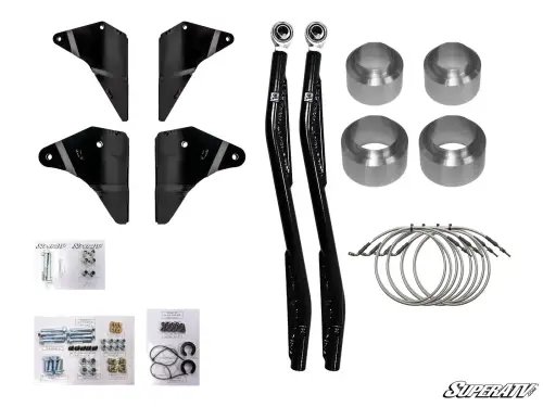 SuperATV 6" Lift Kit for Can-Am Defender HD10 Mossy Oak (Use existing ball joints) Why We Make It SuperATV’s 6” Lift kit gives your Can-Am Defender 17” of clearance, room for 34” tires, and more stability. With our chromoly steel A-arms, we’ve taken the traditional and made it EXCEPTIONAL. The Defender wants to work hard and play harder — with our 6” Lift Kit, there’s no mud hole you can’t conquer. FEATURES: •17" of ground clearance (up from 11" stock) •Run up to 34” tires (up from 27” stock) •Preadjusted pivot blocks give you perfect camber out of the box •Includes 4 bulletproof Rhino 2.0 axles •Lifetime Warranty on all A-arms and brackets •The ONLY chromoly lift kit for the Defender •Chromoly ball joint housings •Chromoly pivot blocks •Chromoly A-arms from end to end! •True 6” of lift •7” wider stance for increased stability (69" wide total) •Compatible with OEM and SuperATV heavy-duty ball joints •Powder coated for increased durability **NOTE: This 6" Lift Kit disables the front and rear sway bars. Rhino 2.0 Features: •100% stronger than stock •Utilizes the Rhino 2.0 Formula •Size: Massive 4mm increase in size! •Materials •Heat Treatment •Constructed of 4340 chromoly steel and finished with a proprietary heat treatment •Industry leading 18-month warranty •Field and lab tested for extreme strength and endurance •CAD drawn for expert precision FITMENT: Can-Am Defender HD 8 : 2016-2021 Can-Am Defender HD 8 Cab : 2020-2021 Can-Am Defender HD 8 DPS : 2016-2021 Can-Am Defender HD 8 XT : 2016-2021 Can-Am Defender HD 9 Cab : 2022+ Can-Am Defender HD 10 : 2016+ Can-Am Defender HD 10 Cab : 2020+ Can-Am Defender HD 10 DPS : 2016+ Can-Am Defender HD 10 Limited : 2020+ Can-Am Defender HD 10 Limited Cab : 2021+ Can-Am Defender HD 10 XT : 2016+ Can-Am Defender HD 10 XT Cab : 2017-2018 Can-Am Defender HD 10 XTP : 2018+ Can-Am Defender HD 10 XMR : 2018-2022 Can-Am Defender HD 10 Mossy Oak : 2017+ Can-Am Defender Pro HD : 2020+ Can-Am Defender MAX HD 8 : 2016-2021 Can-Am Defender MAX HD 8 DPS : 2016-2021 Can-Am Defender MAX HD 8 XT : 2016-2021 Can-Am Defender MAX HD 10 Cab : 2020+ Can-Am Defender MAX HD 10 DPS : 2016+ Can-Am Defender Max HD 10 Limited Cab : 2021+ Can-Am Defender MAX HD 10 Lonestar : 2018+ Can-Am Defender MAX HD 10 XMR : 2019-2022 Can-Am Defender MAX HD 10 XT : 2016+ Can-Am Defender MAX HD 10 XT Cab : 2017-2018 NOTE: Does NOT fit Limited model