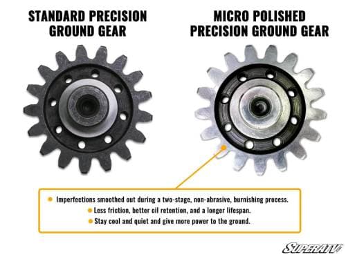 •Cool, quiet, precision ground gears made from 9310 alloy billet steel