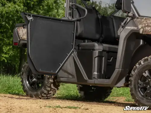 These doors aren’t a one-size-fits-all design—we made them just for the UForce, and you can tell. They’re the perfect height to block mud, rocks, and branches while still giving you a comfortable place to rest your arm. The bends give you more room for your legs so you don’t bang up your knees every time you hit a bump. And to make getting in and out easy, we use a simple automotive-style latch that’s usable with gloves.