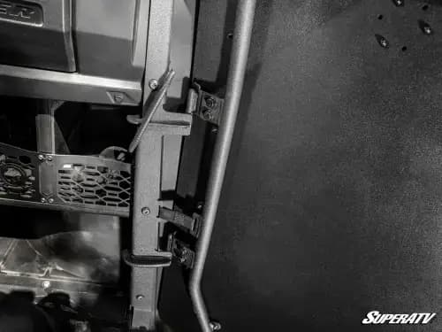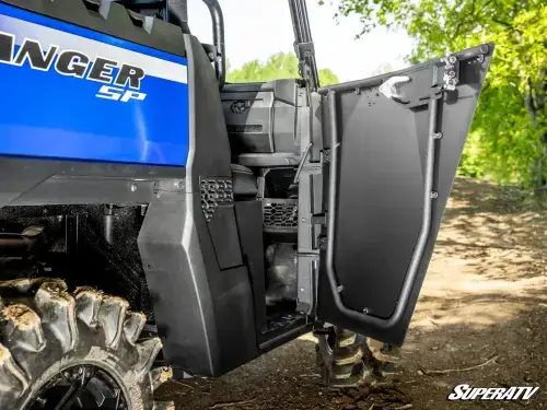 Our aluminum doors come with features to make your ride better. The latching mechanism is placed out of the way, so you won’t accidentally bump your knee on it. Plus, the doors are at the perfect height for resting your arms during long rides. Rock crawlers will love that they’re easy to remove too—just remove the limiting straps and lift them off the gravity hinges. That makes these doors the best choice for your Polaris Ranger SP 570.
