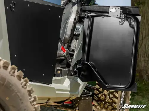 Our RZR Turbo R doors are made with 1/16” aluminum reinforced with a 1” diameter steel tube frame. Together, they defend against rocks and sticks your wheels kick up. And they do it without weighing you down.