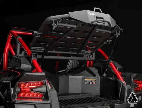 Assault Industries' Adventure Rack doesn’t interfere with your existing cargo bed. It mounts above your bed and can easily be raised when you need to get into it. The locking gas struts ensure it won’t pop open when you’re hitting the trails. Plus, the rack is easy to open—just grab the handle and pull up.