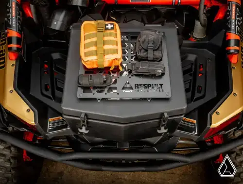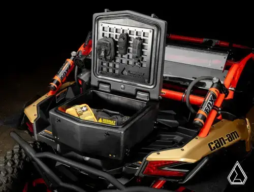 Assault Industries includes a convenient MOLLE panel with this storage box. You can mount the MOLLE panel on the top of the lid or inside it depending on what works for you. On the outside, it’s a convenient location for small accessories. On the inside, it protects your gear from the sun’s harsh rays, dust, and sand. And the holes between the square slots are compatible with 6 mm bolts, perfect for adding clamps and other small accessories.