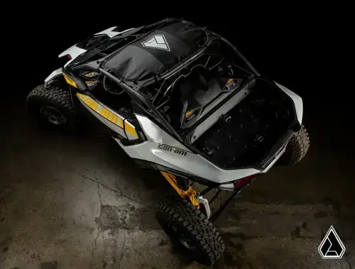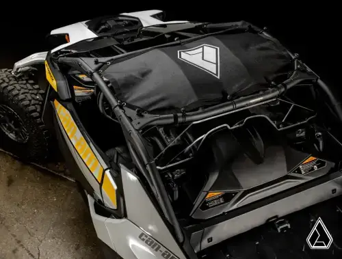 Assault Industries' Can-Am Maverick R shade roof is made with vinyl-coated polyester and uses tie-down bungee cords to keep it tight to your cage. The awesome grenade cord lockers keep it secure even when you’re flying down the trail. Plus, the screen-printed logo gives it the premium finish you expect from Assault Industries.