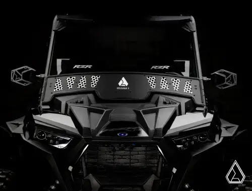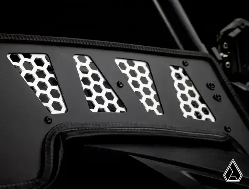 This windscreen for the Polaris RZR Trail S 1000 features an unpainted logo backing plate and honeycomb mesh. The aluminum looks sharp on its own, but it’s ready for you to add your own custom colors to match your machine’s style.