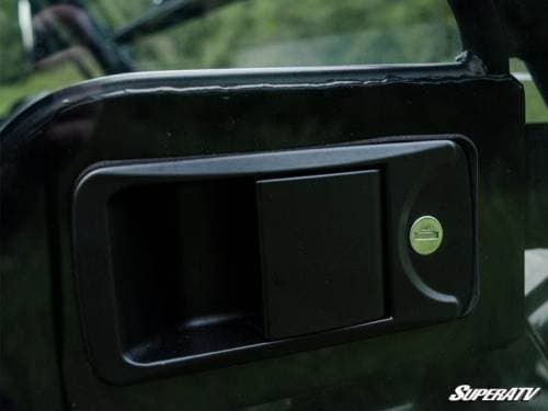 The 1/4” polycarbonate and steel frame are ridiculously strong and will survive almost any impact. Poly is 250 times stronger than glass so big rocks and branches won’t crack your doors. The light tint cuts down on glare and includes side-view mirrors for more visibility. Plus, the locking latches make it secure wherever you go. Opt for our scratch-resistant hard coating for years of clarity.