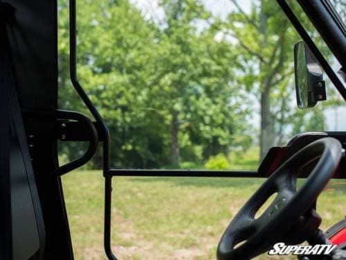 The 1/4” polycarbonate and steel frame are ridiculously strong and will survive almost any impact. Poly is 250 times stronger than glass so big rocks and branches won’t crack your doors. The light tint cuts down on glare and includes side-view mirrors for more visibility. Plus, the locking latches make it secure wherever you go. Opt for our scratch-resistant hard coating for years of clarity.