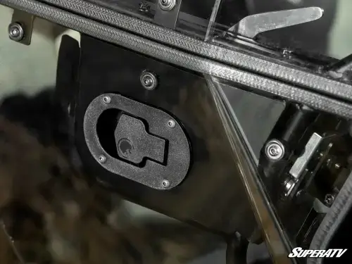 Our doors are tough enough to handle whatever you throw at them thanks to durable polycarbonate and a powder-coated steel frame. Polycarbonate is 250 times stronger than glass and our XR Optic Coating gives unparalleled scratch resistance. That means no cracks even if your door comes face-to-face with the hardest boulders. The light tint lets in the perfect amount of sun too, so you stay comfortable without sacrificing visibility. Exterior latches keep the doors closed securely while you’re moving so none of your valuables go missing on the trail. Combined with the sliding windows and the gravity hinges, you’ve got some of the best-equipped and most helpful doors available.
