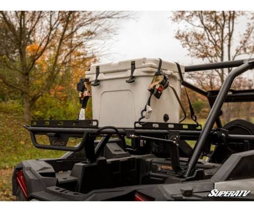 Holes in the platform give you multiple places to hook ratchet straps or bungee cords, so you’re always guaranteed a convenient attachment point. This cargo rack even comes with three removable side brackets that can be bolted anywhere on the platform, allowing you to set up multiple storage configurations. From coolers to fishing poles and everything in between, this storage system makes hauling your gear easy.