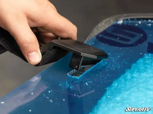 We use 1/4” polycarbonate when designing our Custom Cage Windshield Kit. It’s 250 times stronger than glass and 25 times stronger than acrylic, making it durable and able to withstand tough trails. The XR Optic Hard Coating we use keeps your windshield looking clear and scratch-free for years.