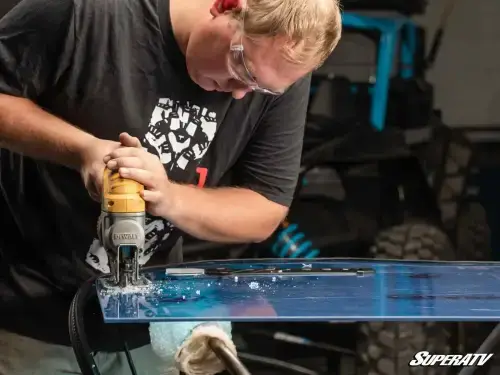 NOTE: Make sure to wear protective gear and follow all safety protocols when cutting this windshield.