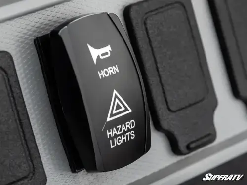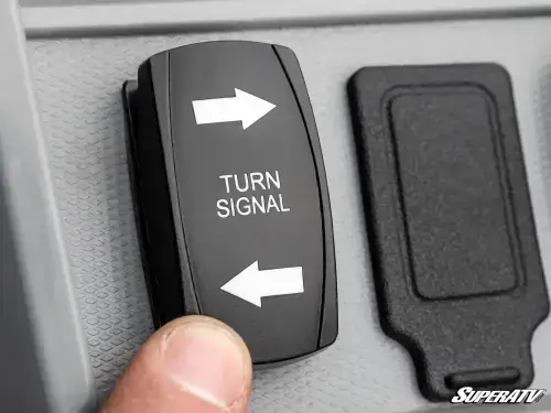This UForce 800 turn signal kit comes with two dash-mounted switches. One controls your left and right signals. The other controls the included horn and hazards. Both are backlit so you can see them clearly, even at night.