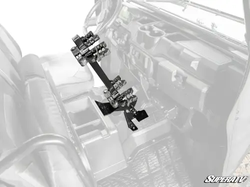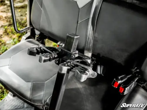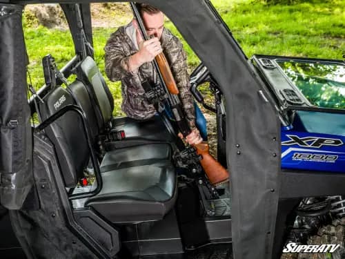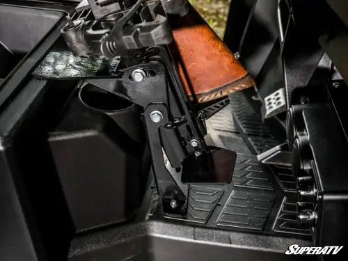 We designed this gun holder with an adjustable base and mount so you can position your firearm just the way you like it. The butt plate ensures your gun stays put, and when hunting season's over, you can easily take it off with the thumb screws. Plus, it only takes up the middle seat—you can keep your guns secure and still leave room for your buddy to sit comfortably.