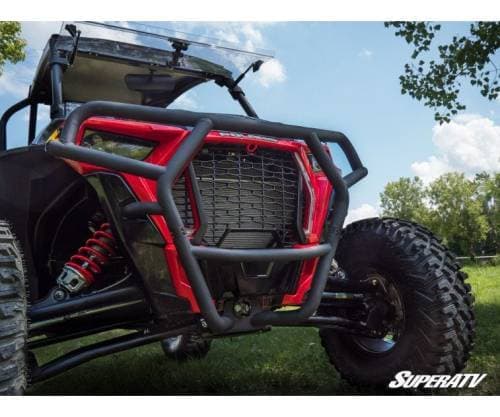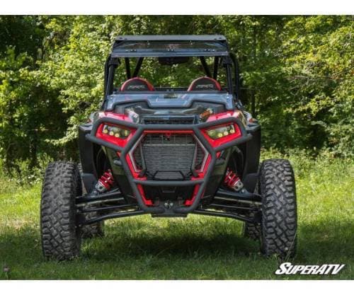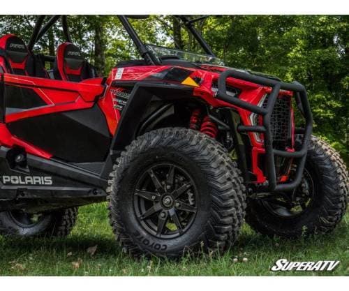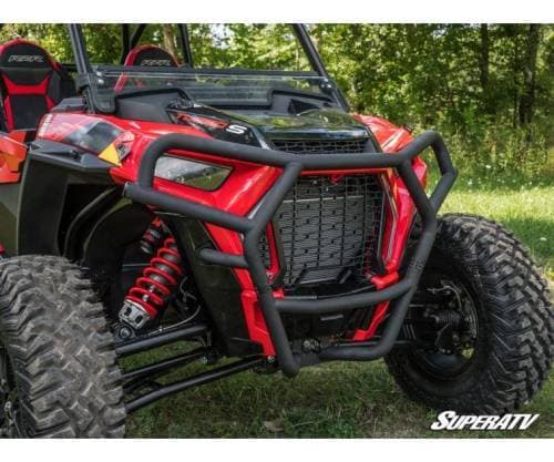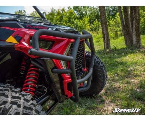 When you put a front brush guard like this on your UTV, you’re making a statement. The UV-resistant powder coating and CNC machined end caps show you don’t compromise. The tubing bent to match your Turbo’s predator-style front end will turn heads and show everyone that you’re there to play hard. It’s a bumper for the bold.