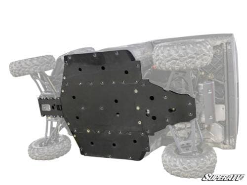 This skid plate is so strong because it’s made with a proprietary blend of UHMW skid plate material. We call it ARMW and it rocks. The 1/2” sheets we use are extremely strong, so they last longer than aluminum and won’t get dinged up. They’re smoother than aluminum so you slide over rocks and obstacles without screeching and squealing. The patented interlocking design ensures a secure fit that you can’t find anywhere else.