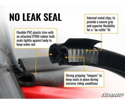 We ensure a perfect fit on your Can-Am Defender with careful design and manufacturing. With a full length rubber bulb seal, you get a snug, rattle-free fit that doesn’t let wind or rain through the cracks. You get maximum comfort and protection from the elements. It is also easy to install, which means it won’t be long till you’re back on the trail.