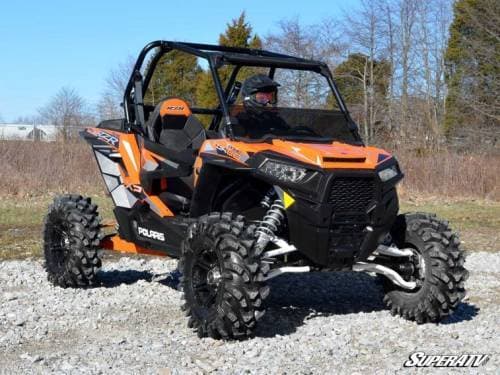 If you want to protect yourself from the elements while keeping your RZR 900’s open cab feel, the half windshield is the way to go. It keeps your cab's airflow out of your face so your eyes won’t water and you won't get plastered with dead bugs. It matches the shape of your machine perfectly to ensure wind doesn’t sneak in around the edges too.