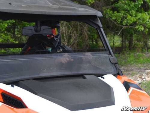 Our windshield is made with 1/4” hard coated polycarbonate. It’s 250 times stronger than glass (aka indestructible) and it’s nearly as abrasion resistant as glass. This windshield can take hits from rocks, bushes, branches, and your angry neighbor without scratching or scuffing.
