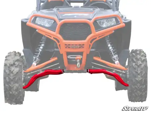 SuperATV High Clearance A-Arms for Polaris RZR XP 1000 (Adjustable, Lower Heavy-Duty 4340 Chromoly Steel, Red) The Suspension Upgrade You Need Have you ever found yourself going around a rock or stump while all your buddies sailed over it with no problem? If you answered “yes,” it’s probably time to think about giving that stock suspension an upgrade. SuperATV has just what your Polaris RZR XP 1000 needs with our High Clearance A-Arms. A clever bend design delivers extra ground clearance, and the adjustable pivot blocks allow you to adjust your camber as needed. Top it all off with stronger steel and bigger tubing and you’ve got yourself a truly unmatched set of A-arms.