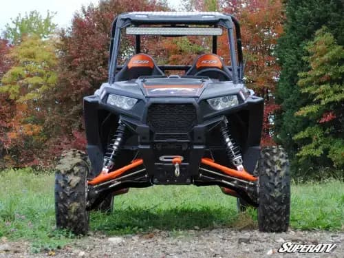 SuperATV High Clearance A-Arms for Polaris RZR XP 1000 (Adjustable, Lower, Super Duty 300M, Black) The Suspension Upgrade You Need Have you ever found yourself going around a rock or stump while all your buddies sailed over it with no problem? If you answered “yes,” it’s probably time to think about giving that stock suspension an upgrade. SuperATV has just what your Polaris RZR XP 1000 needs with our High Clearance A-Arms. A clever bend design delivers extra ground clearance, and the adjustable pivot blocks allow you to adjust your camber as needed. Top it all off with stronger steel and bigger tubing and you’ve got yourself a truly unmatched set of A-arms.