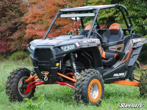SuperATV High Clearance A-Arms for Polaris RZR XP 1000 (Non-Adjustable, Lower, Standard Duty, Red) The Suspension Upgrade You Need Have you ever found yourself going around a rock or stump while all your buddies sailed over it with no problem? If you answered “yes,” it’s probably time to think about giving that stock suspension an upgrade. SuperATV has just what your Polaris RZR XP 1000 needs with our High Clearance A-Arms. A clever bend design delivers extra ground clearance, and the adjustable pivot blocks allow you to adjust your camber as needed. Top it all off with stronger steel and bigger tubing and you’ve got yourself a truly unmatched set of A-arms.