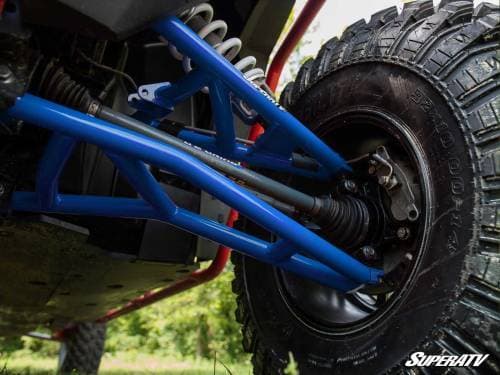 SuperATV’s high clearance A-arms feature industry-leading adjustable pivot blocks, which let you adjust your alignment to maintain perfect camber. The best part is we adjust them to stock specifications from the get-go, so you don’t have to make any alterations if you don’t want to. Why would you want to have more control over your camber? Maintaining proper camber eliminates the premature wear that comes with adding a lift kit or bigger tires. In other words, our adjustable pivot blocks keep you riding longer.