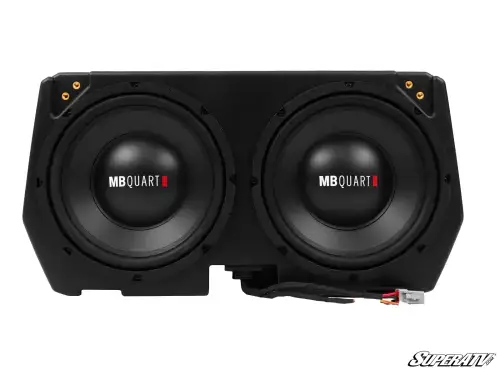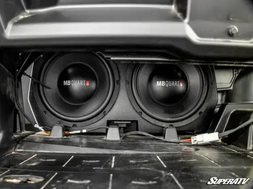 This Can-Am Defender sub box is designed specifically for your machine. It installs under your seat and plugs directly into your MB Quart Visor Audio System with the water-resistant connectors, or connects to other audio systems using an adapter.