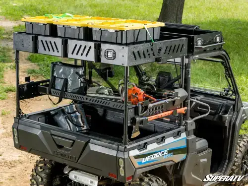 Product:SuperATV Outfitter Bed Rack for CFMoto (2019-24) Uforce 1000 (w/ lights, 1 Shelf)