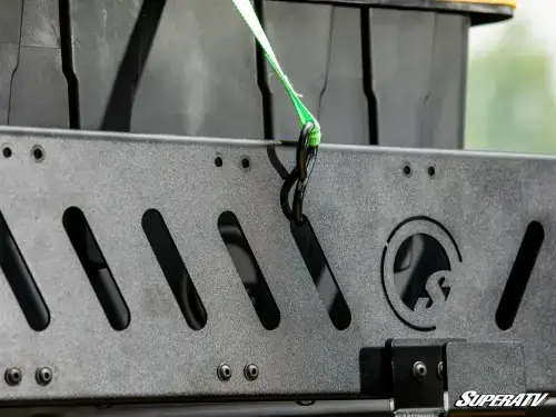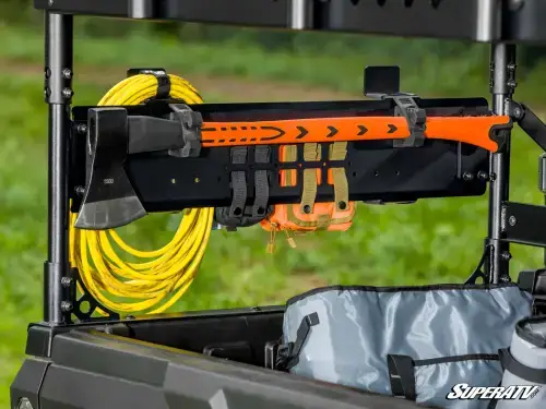 The rack offers more cargo space with MOLLE panels on each side for additional tool and supply mounting. Slotted sides are perfect latching points for straps and cords, while included hooks allow you to carry extension cords, hoses, ropes, or Texas rigs.