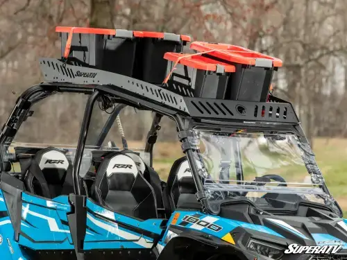 All that space on your roof is just being wasted. Fix that with our roof rack! The side panels are slotted, so you get plenty of spots to secure cargo. And they won’t let your cargo slide off the sides or tip over. And the angled design perfectly matches your RZR’s sporty look—that’s why we called it the Outfitter Sport Roof Rack.