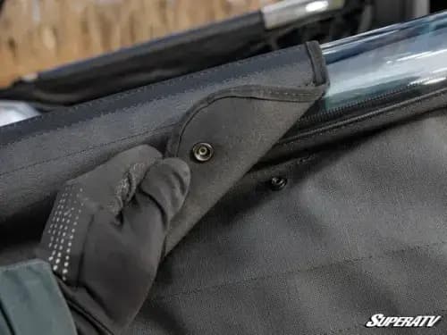 With these soft cab enclosure doors, it doesn’t matter what the weatherman says—you’ll be riding in comfort all year long. Roll the windows up and secure them using heavy-duty snaps when you want some extra airflow, or when you just want to protect your doors from mud. If you really don’t need them on your weekend ride, you can unzip and remove the vinyl section completely. But when you want coverage from rain or cold temps, the snag-free zippers will keep them firmly closed.