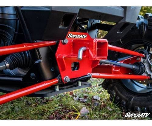 This hitch uses a standard 2-inch by 2-inch receiver. That means you can attach a huge variety of accessories and implements to put the utility back into UTV. Use our hitch to attach a cargo rack, dirt bike rack, step up and more. It’ll make your RZR more versatile than ever.