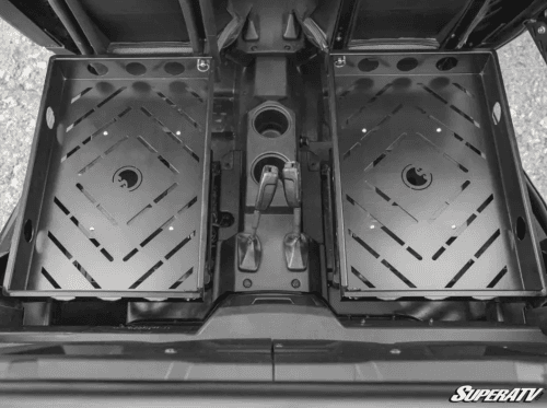 This RZR rear seat delete kit does exactly what you need it to. You can completely convert your back seats to a single large cargo rack, covering up your rear center console in the process. Or you can delete one seat and keep your third seat intact. You can also keep your center console uncovered and convert each seat to it’s own separate rack. Not to mention, the steel racks bolt directly to your seat base and gives you tons of tie down points for all the cargo you’ve got.
