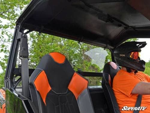 We use polycarbonate for our windshields because it’s the perfect side-by-side material. It’s 250 times stronger than glass so no matter how big the clods of dirt are that you kick off your rear tires, this windshield won’t break.