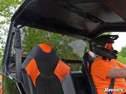 We use polycarbonate for our windshields because it’s the perfect side-by-side material. It’s 250 times stronger than glass so no matter how big the clods of dirt are that you kick off your rear tires, this windshield won’t break.