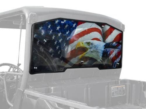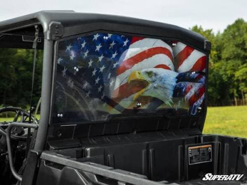 Customize your ride even more by upgrading to a printed windshield. This isn’t your run-of-the-mill vinyl decal that’s gonna peel off after a few washes or rough rides. Each design is printed directly on the windshield, producing a photo-quality rear window graphic that’s nearly impossible to scratch off. The perforated image looks solid from the outside, providing some much-needed shade. But once you’re inside the vehicle, you’re left with a clear view of whoever’s eating your dust.