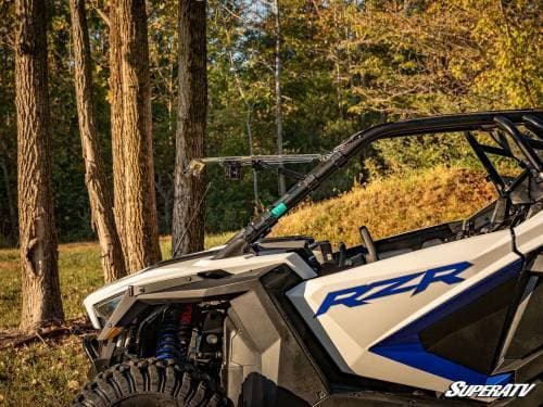 At 250 times stronger than glass, polycarbonate is the ultimate off-road windshield material. That’s why it’s the windshield material you want on your PRO XP—it stands up to branches, rocks, and rooster tails without breaking. Pair that strength with our proprietary XR Optic scratch-resistant hard coating and you get a windshield that’s built for battle.