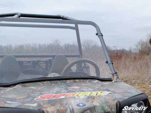 Our windshield is made with 1/4” hard-coated polycarbonate. It’s 250 times stronger than glass and 25 times stronger than acrylic—with that much strength, it’s virtually indestructible. When you’re flying down the trail hitting those kicked-up rocks and the odd tree branch, you can trust this windshield to hold together.