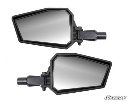 Our breakaway mirrors install easily with heavy-duty billet aluminum clamps and are fully adjustable. Our 1.75” diameter clamps fit snug and secure every time with no slippage or rattle. The inset mirror pivots in any direction allowing riders of any height to fine-tune the mirror angle to see more of the tires or more of the trail. You get full awareness of your surroundings in an instant.