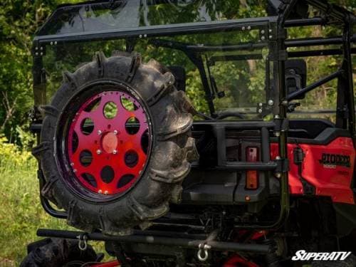 This carrier mounts directly to your vehicle’s frame with heavy-duty clamps. Not only do the clamps make for an easy installation, but their slip-resistant qualities mean you won’t have to worry about any annoying rattle or movement when you’re going hard. The entire frame of this product is made out of 1-3/4” powdercoated steel. The coating increases the strength of the steel while also making it resistant to rust brought on by moisture and humidity. Our tire carriers come with all necessary hardware, meaning you can install it and be on the go within minutes.