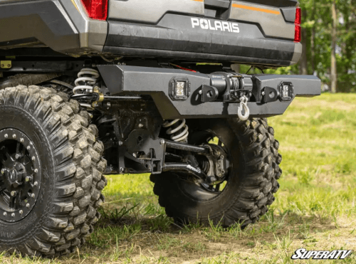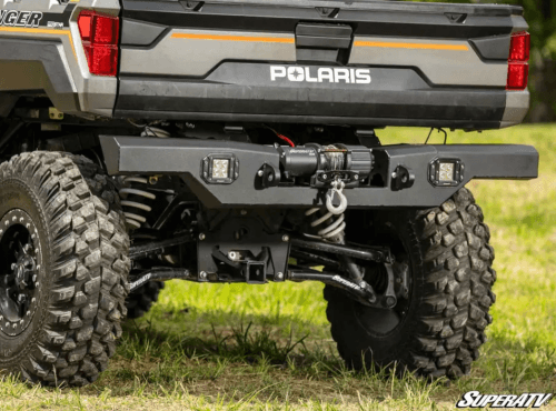 Our bumper is made with heavy-duty 1/8” thick aluminum for maximum strength. It also has room for a 3500 lb. winch or a 12” LED light bar, whatever suits your riding style. There are precut holes for 3” cube lights too, so you can get maximum visibility day or night. This bumper comes with two D-ring mounts so you can pull, tow, and come to the rescue even easier.