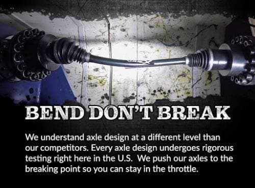 X300 is about more than brute strength, it’s about flex. When X300 gets hit with a torque load that would break other axles, the 300M shaft twists until the load is gone then returns to its original position. Our unique Flexshaft™ technology relieves much of the stress that would be transferred to your CVs and differential with other axles. The result is less wear and tear on much more valuable drivetrain parts.
