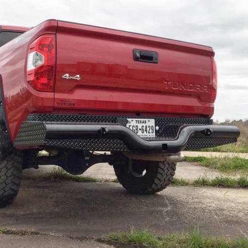 Tough Country’s founding product was the Deluxe Rear Bumper. The state of the art design features a continuously flowing 4? pipe base with a built-in flush mount receiver. -Tough Country’s founding product -Only Rear Bumper on the market with continuous flowing schedule 40, 4” Pipe Base -Built in Flush Mount Receiver -Standard finish is a high gloss black industrial powder coat -The base model deluxe rear bumper comes standard with a 8? drop, complete with license plate lights, 7 Way Mount and safety chain attachment points. 10? Drop optional. -Customizable Options Available NOTE: Not all accessory shanks will work with the Deluxe Rear Bumper. This bumper requires at least 5-1/4” of unobstructed shank from pin hole to ball mount platform or any gussets. This is to allow it to pass through the 4” pipe and be pinned on the back side of the bumper. The factory receiver must be removed to install the Deluxe Rear Bumper.