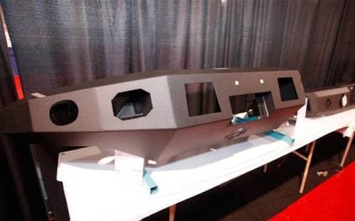 The Evolution Front is constructed from 10 Gauge flat plate steel. This bumper comes standard with a black wrinkle powder coat finish.