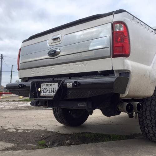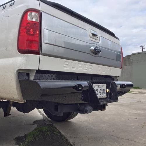 The base model Traditional Style Rear Bumper has an 8? drop and comes complete with license plate lights and a universal mount for the factory wiring harness. -Constructed of 4” schedule 40 pipe frame 1/2? Plate Drop Box -8” drop; comes complete with license plate lights -Universal mount for the factory wiring harness -You can retain you factory receiver hitch with most of our Traditional Style 8” drop rear bumpers -Standard finish is high gloss industrial strength powder coat *This year model vehicle did not come with factory towing packages. We can not guarantee that this bumper will work with any aftermarket towing apparatus.